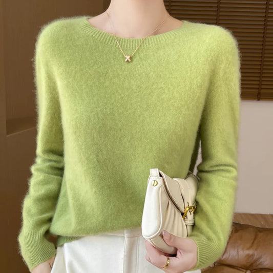 Luxurious Merino Wool Sweater For Women: O-Neck & Long Sleeve