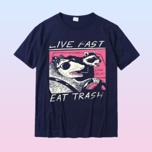 "Live Fast! Eat Trash!" Graphic T-Shirt With Soft Cotton Blend