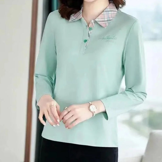 Checked Collar Charm: Women's Long Sleeve Polo Shirt