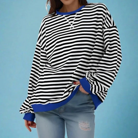 Oversized Vibes: Long Sleeve Striped Color Block Women's Top