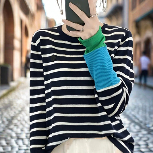 Modern Mix: Women's Soft Wool Sweater With Contrasting Sleeves