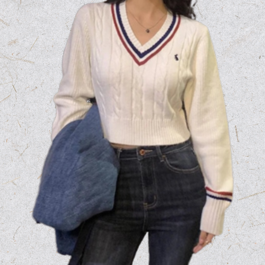 Own the Y2K Look: V-Neck Cropped Knit Sweater