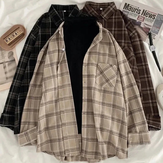 Women's Layering Staple: The Oversized Plaid Button-Up Shirt