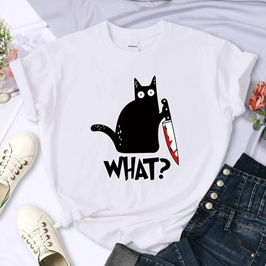 Cattitude With A Twist: Breathable Black Cat Graphic Women's T-Shirt