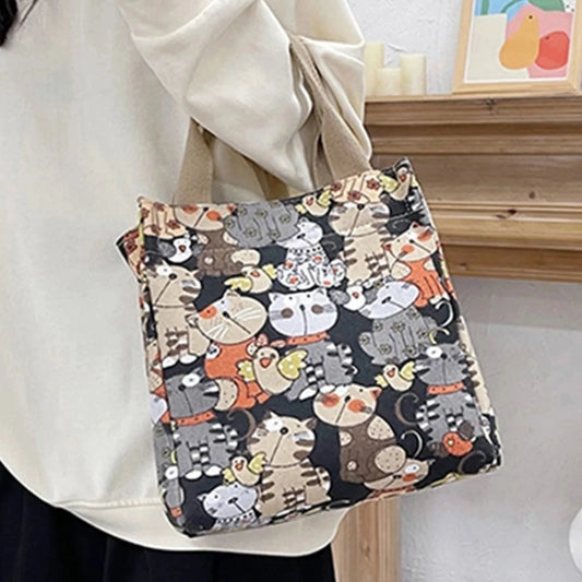 ✨ Tote-ally Adorable: Canvas Bag With Cartoon Pattern ✨