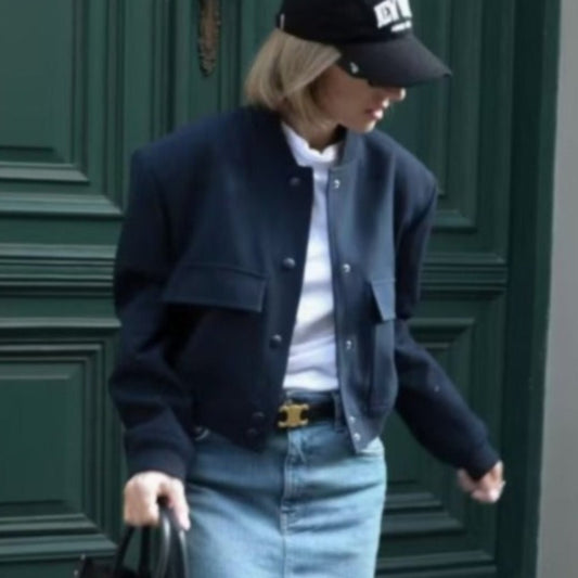O-Neck Solid Color Casual Jacket With Pockets For Women