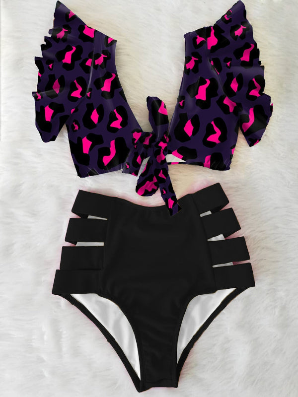 This stunning bikini set features a high waist bottom with ruffled detailing, and a V-neck top with removable padding. The floral print is perfect for the beach or pool, and the ruffles add a touch of femininity. This bikini is sure to turn heads wherever you go!