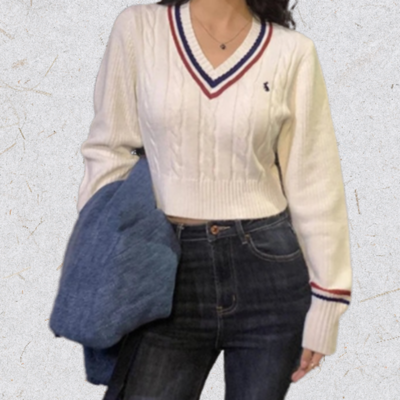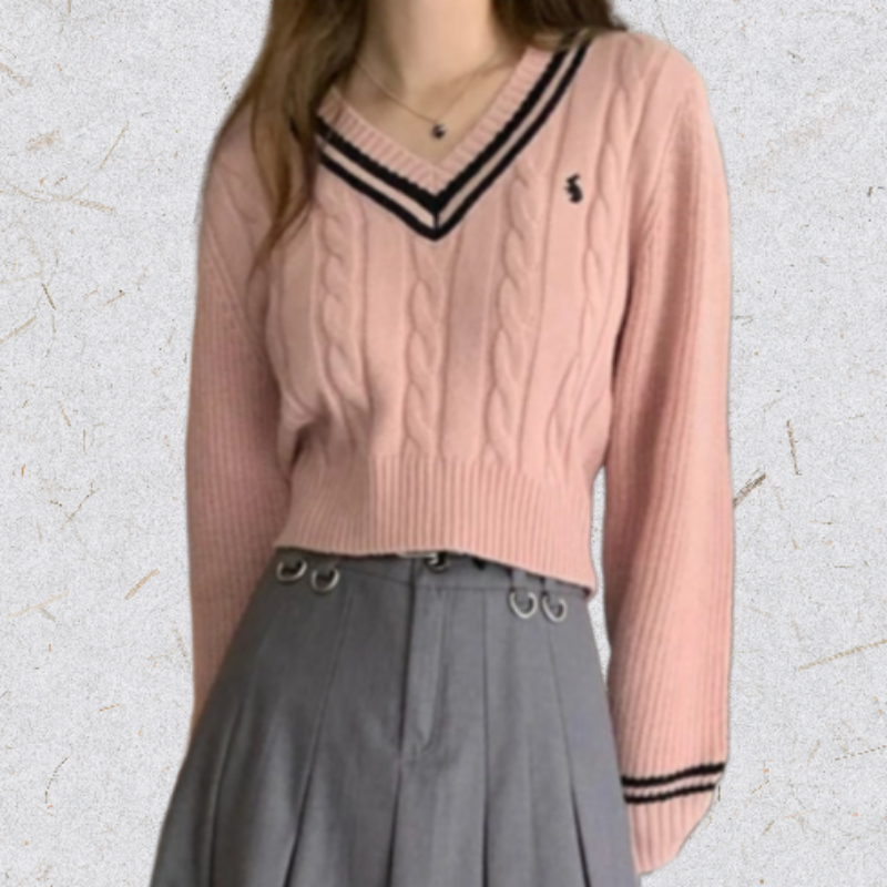 Own the Y2K Look: V-Neck Cropped Knit Sweater