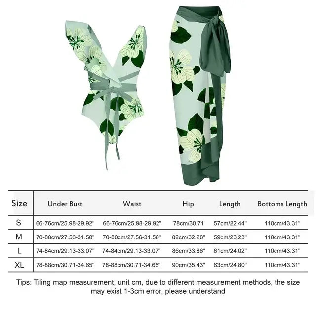 The Perfect Duet: One Piece Push-Up Swimsuit & Long Skirt Set