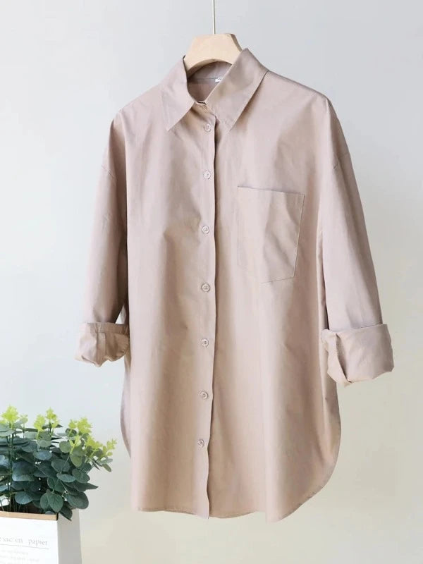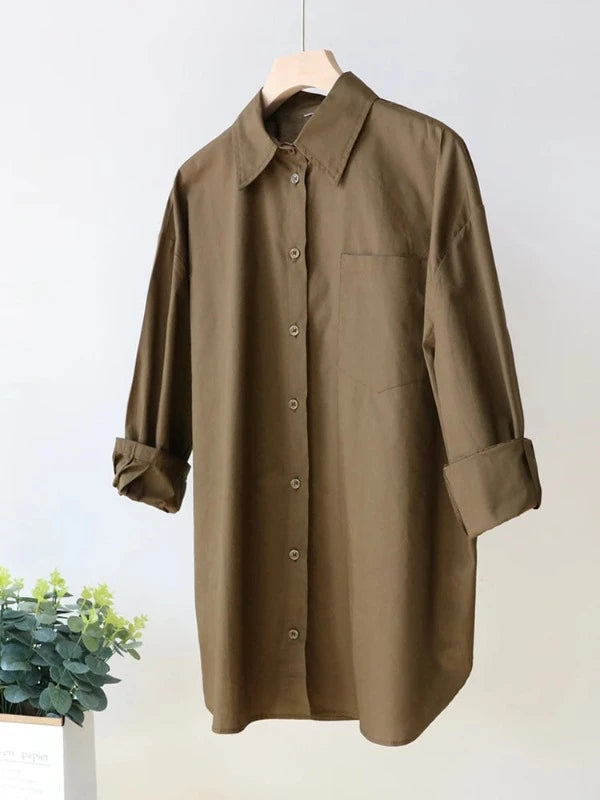 - Long & Luxe: Layer up in luxurious comfort with this longline button-down top. The oversized silhouette offers a modern, relaxed look, while the soft cotton fabric ensures all-day comfort.