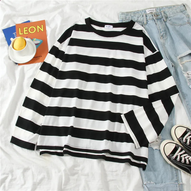 Weekend Vibes: Women's Oversized Striped Long Sleeve T-Shirt