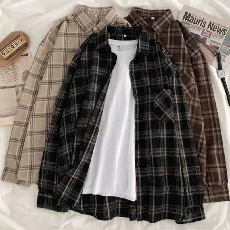 Women's Layering Staple: The Oversized Plaid Button-Up Shirt